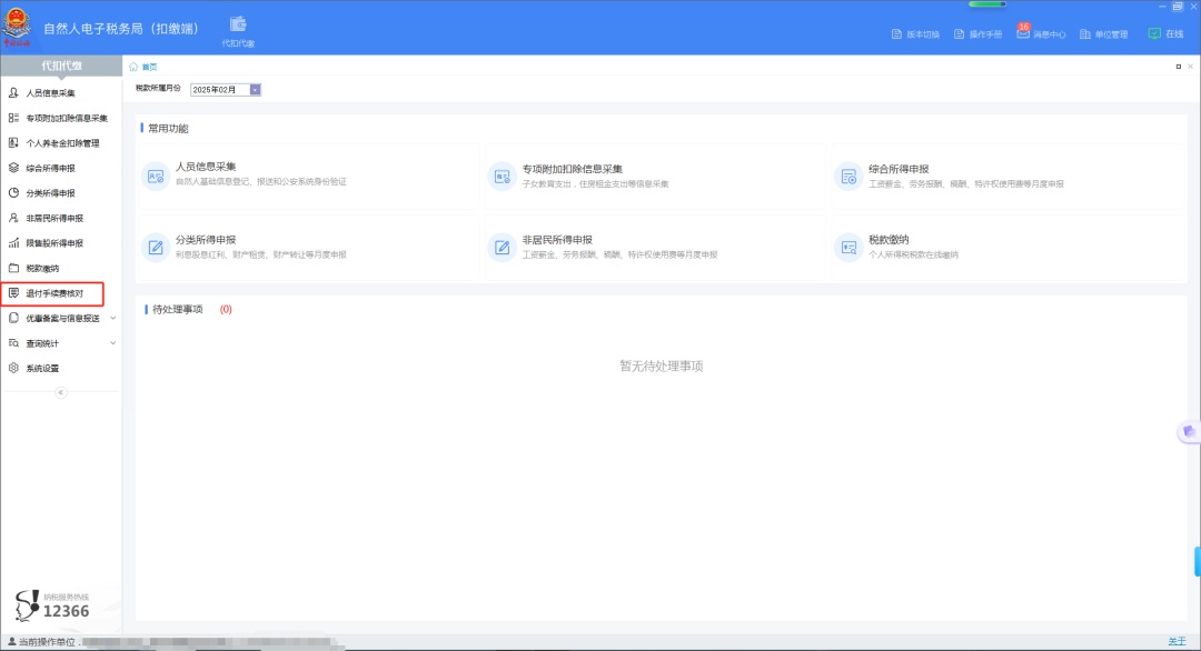 选择“申报密码登录”或“扫码登录”,进入自然人电子税务局(扣缴端),点击【退付手续费核对】。