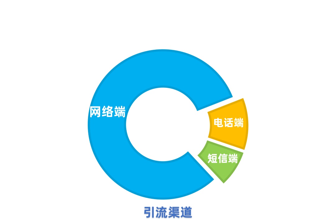 网络端已经成为诈骗分子的主要引流渠道,发案占比超过80%,几乎涵盖所有常见诈骗类型;通过电话端、短信端引发的诈骗案件主要集中在假冒客服、虚假贷款类诈骗。