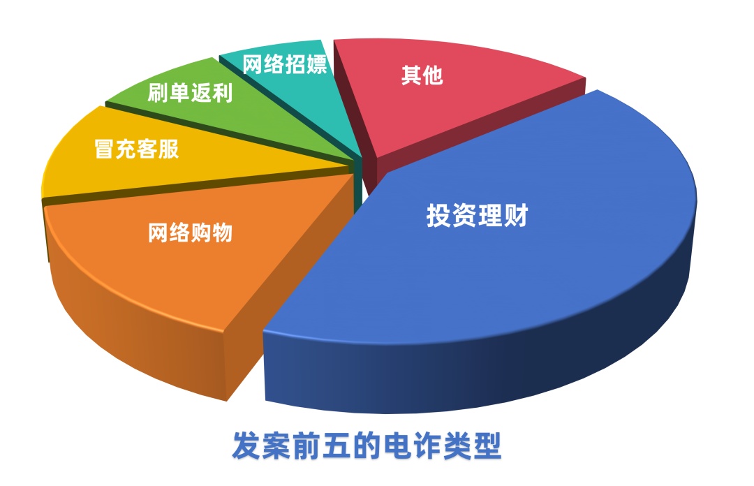据统计,今年以来,以电信网络诈骗为代表的非接触诈骗案件发案居前五位的类型分别是虚假投资理财、虚假网络购物、冒充平台客服、刷单返利和虚假网络招嫖,其中,虚假投资理财发案占比超过40%,主要手法是以股票、期货、虚拟币等投资获利为幌子,诱导安装虚假投资APP进而骗取钱财。