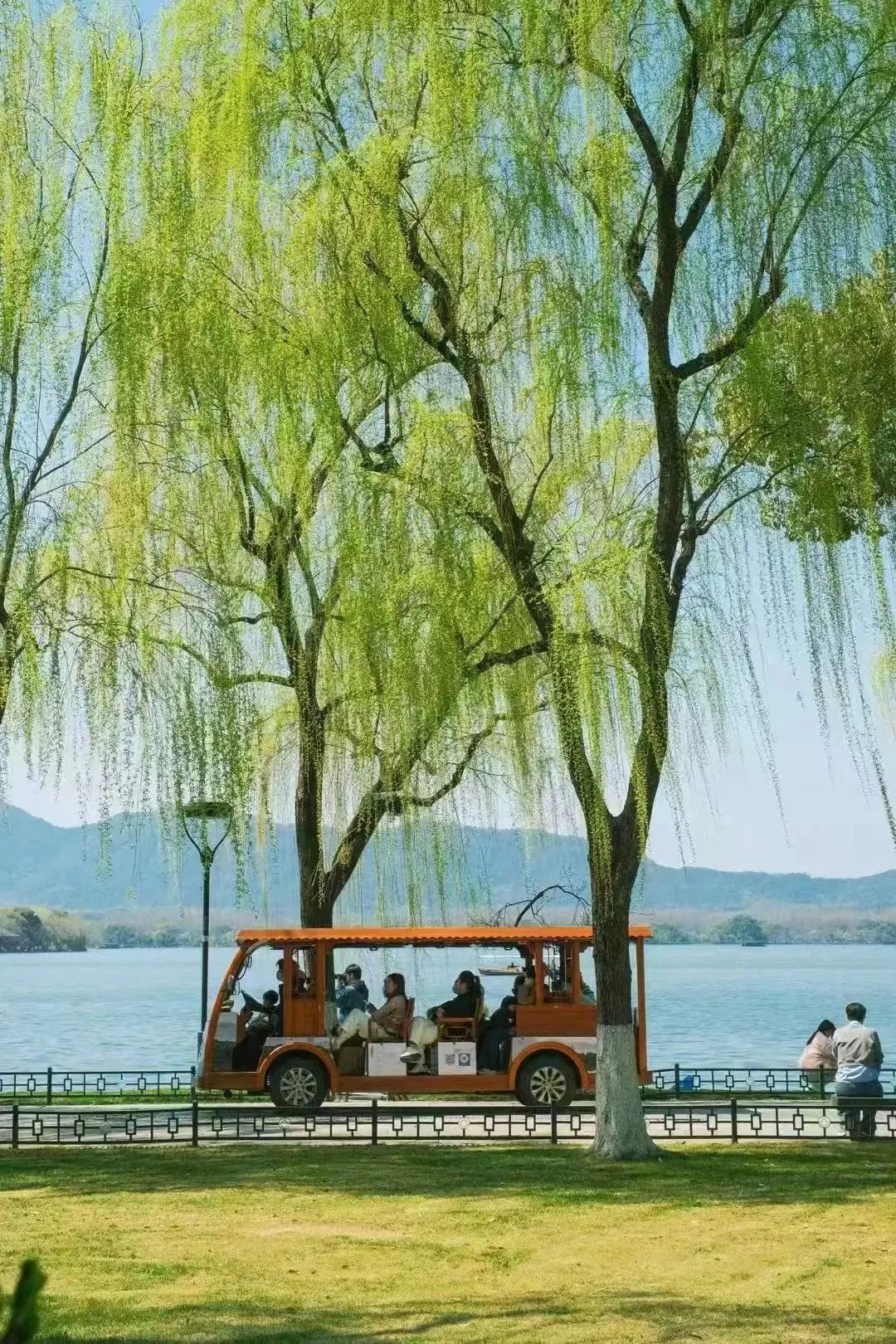 西湖的春,是文人墨客写不尽的温柔。一年四时,春花秋月,五彩缤纷,景色各异。阳光洒下来,满地都是跳动的光斑,春天在这里变得触手可及。微风拂过,花儿摇曳生姿,柳枝低垂,搅碎了满湖春光。