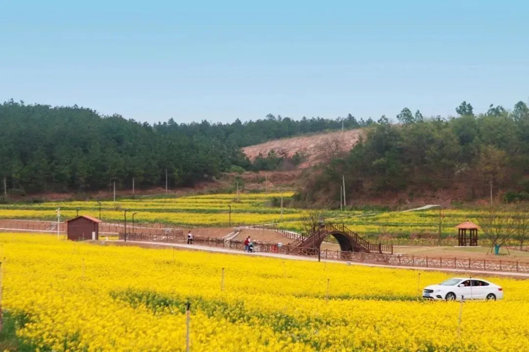 春日正盛,明光三界外油菜花田、三界梅郢村大路组等地,景观独具特色,金色的花朵在阳光的照耀下熠熠生辉。花海与周边错落有致的青山绿水、古朴村庄相互映衬,白墙黛瓦点缀其间,尽显田园诗意。周边自然生态良好,山水相依,在赏完油菜花后,还可漫步山水间,享受清新空气。