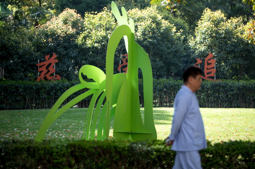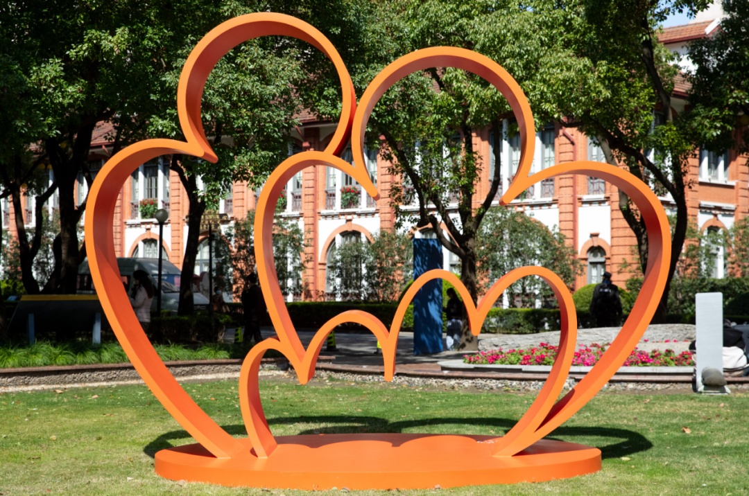 这是瑞金医院“善爱·共生”系列公益艺术展的活动之一,不同于传统艺术展在封闭空间布展,此次十余件雕塑、油画作品矗立于草坪上、花丛中、大厅里,与自然共呼吸,与患者同悲喜,当凝视这些艺术作品时,人们看见的不仅是雕塑,而是生命的不同可能。