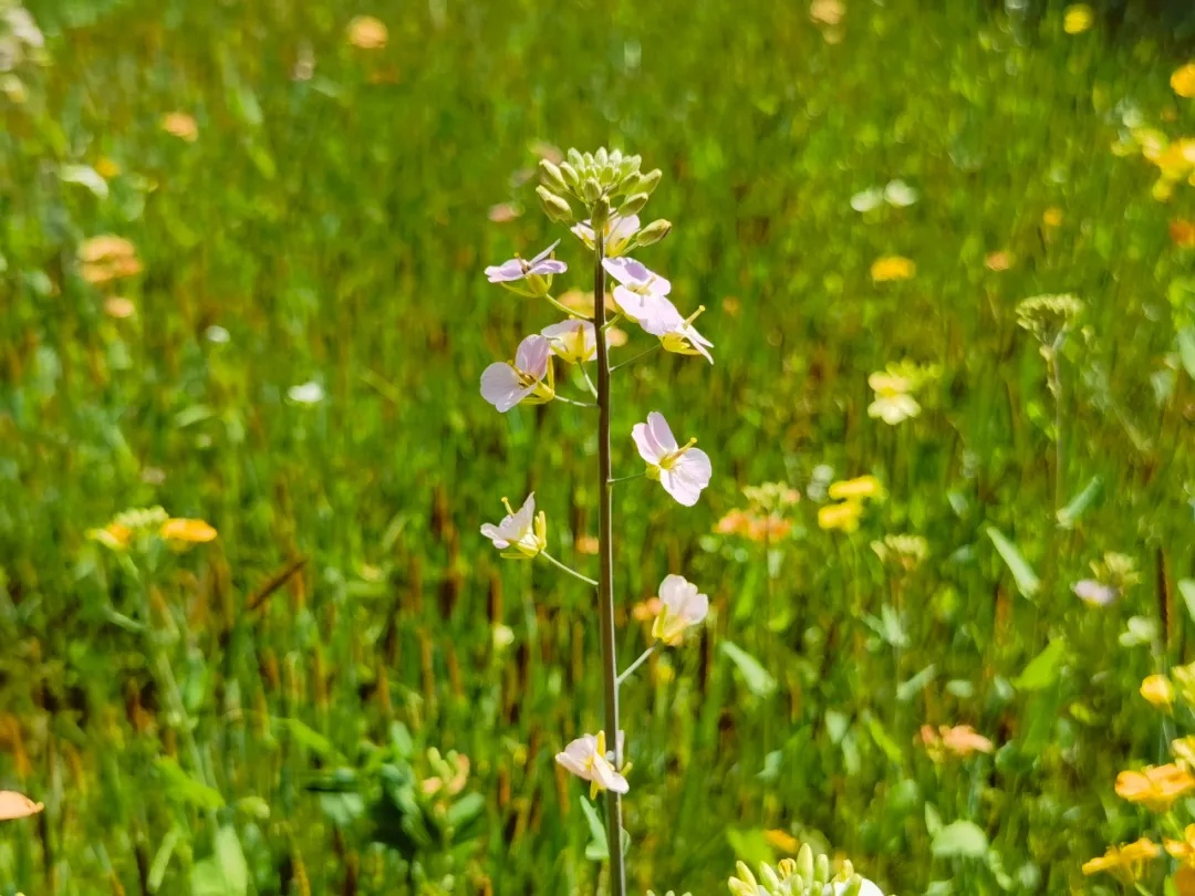 在黄色花海之外,还有一处油菜花田显得与众不同。这里的油菜花,橙的明媚,红的火辣,白的高洁,粉的稚嫩,五颜六色的油菜花宛若七彩蝴蝶或是斑斓花伞,吸引了不少游客前来观赏拍照。