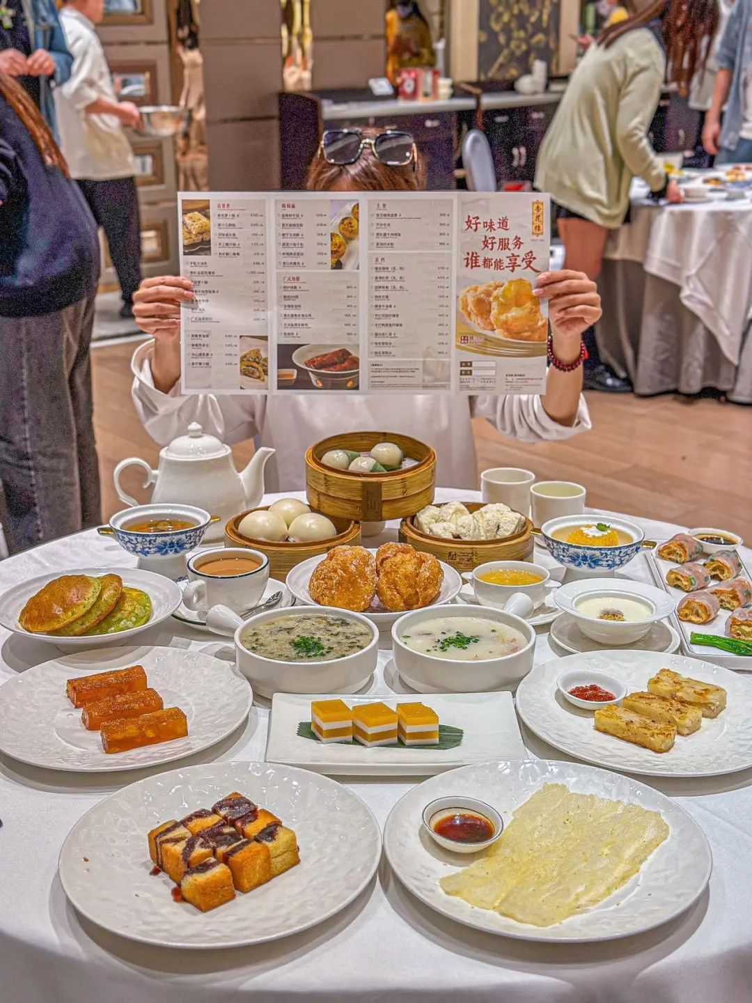 走进杏花楼黄河路店,全新的茶点单上,密密麻麻的“9.9元”标识格外醒目:香煎萝卜糕、蔗汁马蹄糕、手工糖沙翁等12款经典点心,桂花炖奶、冰冻蜂巢甘露等5款甜品,以及檀岛咖啡、香滑奶茶等3款饮品,全部以个位数价格呈现。而豉汁蒸排骨、鲜虾烧卖等特色点心虽未加入“9.9元阵营”,价格也普遍降至20元以下,各类风味小炒和啫啫煲的最高价也仅为68元/例。