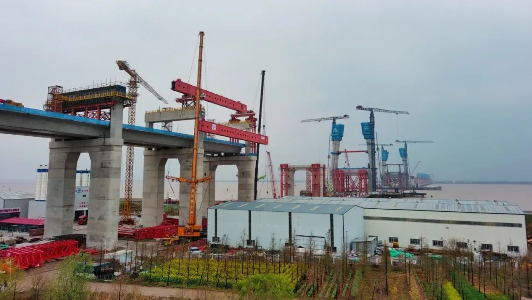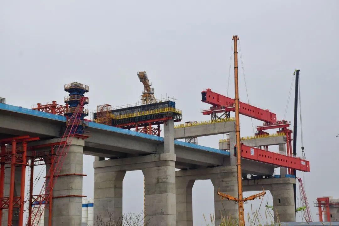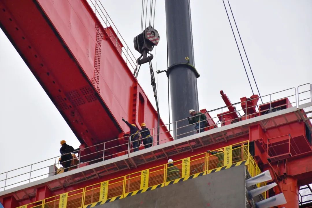 3月27日,两台650T汽车吊双臂吊机已在崇启公铁长江大桥的主桥6号墩与北引桥1号桥墩就位,由中铁大桥局承建的崇启公铁长江大桥北引桥公路侧移动模架首片主梁开始吊装,大桥建设进一步加快,持续刷新“进度条”。 据悉,移动模架是一种自带模板,利用墩柱作为支承,对桥梁进行现场浇筑施工的大型工装设备,和传统支架现浇施工方案相比,施工机械化程度高、安全性好,对交通影响小、施工效率高,便于开展顺序作业。 “主梁吊装是安装移动模架最为重要的一步,后续还需联系梁、导梁、外肋、模板施工等。预压完成后,才能进行桥梁浇筑。”沪渝蓉高铁V标二分部北岸工区总工王明智介绍。崇启公铁长江大桥北引桥公路侧移动模架全长91.4米,重约1200吨,此次吊装的主梁单个重约120吨,负责主桥6号墩至引桥12号墩左右幅24孔上层公路现浇梁施工,计划在今年4月底完成预压。 崇启公铁长江大桥为世界上在建的最大跨度双塔双索面公铁两用无砟轨道斜拉桥,是上海至南京至合肥高速铁路重点控制性工程。大桥全长4.09公里,主跨400米,横跨长江入海口北支航道,其构造为双层布置的公铁两用桥,北引桥侧将运用两台移动模架进行上层公路梁及城际侧铁路梁施工。目前,项目部贯彻穿透式单元化管理,以劳动竞赛为契机,压实责任,严把安全质量关,确保项目加速推进,计划于2025年8月完成主塔封顶,2025年下半年完成非通航孔桥和主通航孔桥边跨钢梁顶推,2025年年底力争完成主桥斜拉索安装、实现全桥钢梁合拢,2026年完成南北引桥、全桥无砟轨道和附属工程施工。