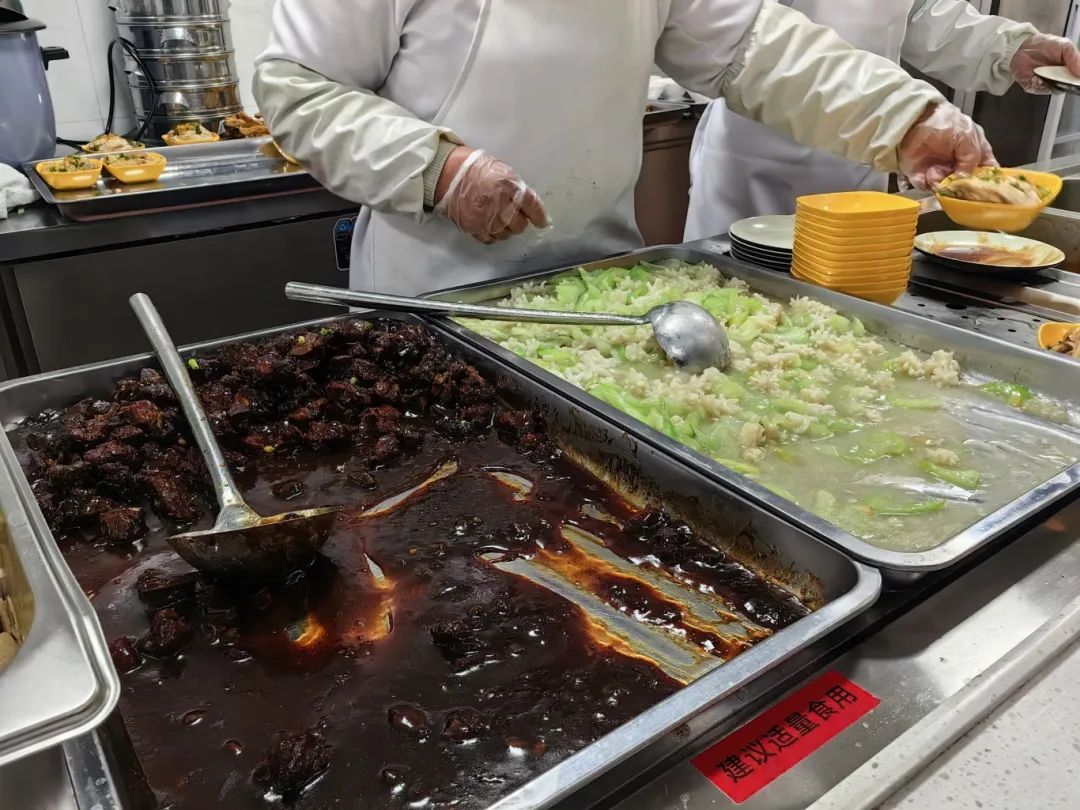 走进长者食堂,阵阵饭菜的香气扑鼻而来,在长者食堂蒸汽腾腾的取餐窗口前,工作人员身着统一制服,手持长勺为老人盛菜,每份餐量精准控制,红烧大排、咖喱鸡肉等本帮菜冒着热气。