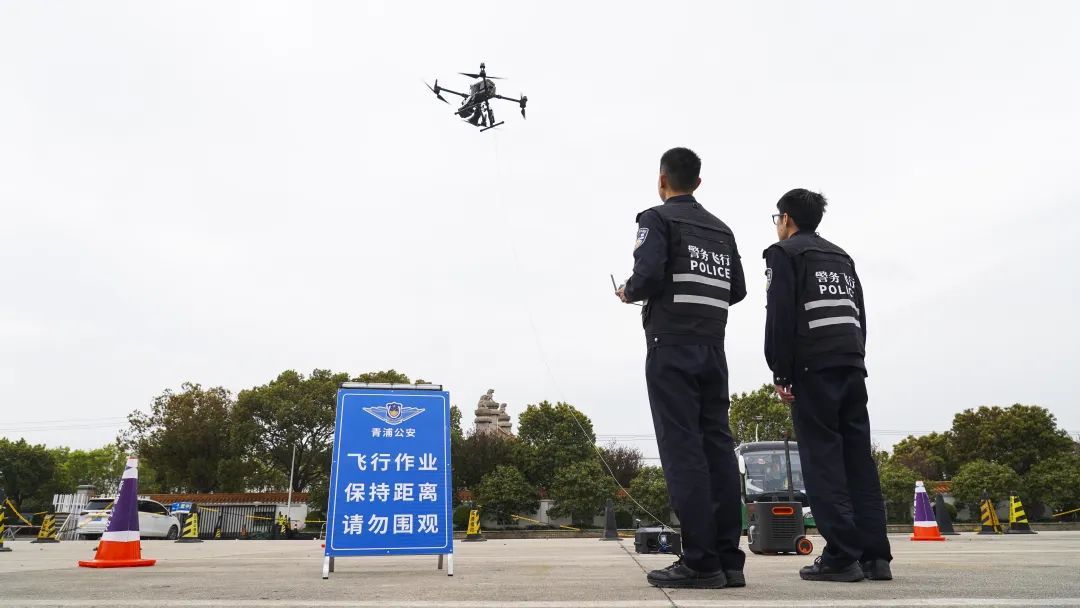 青浦公安分局无人机专班民警冯子煜向记者展示了科技装备的应用场景:“通过系留无人机可实现24小时高空监测,实时回传车流热力图辅助决策。单警无人机搭载红外设备对墓区进行火情巡航,形成‘空中预警-地面响应’的闭环处置机制。”