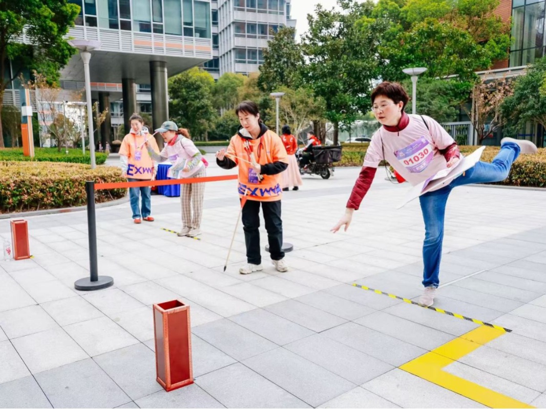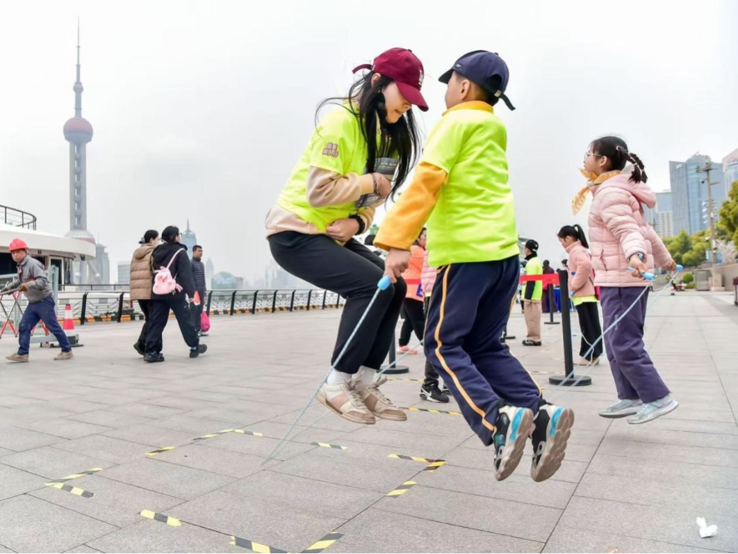 记者现场看到,在“亲子跳绳”打卡任务中,妈妈要和孩子挑战双人跳绳。想顺利完成这项任务,协作性、默契度缺一不可,现场充满了“亲子组合”的欢笑声。