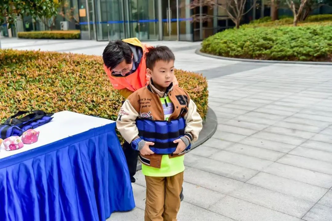 而在“爱的重量”打卡点位前,参赛的小朋友需要在戴上负重包的情况下,前往目标点拿取3个沙包后折返,以此体验妈妈在孕期中的辛苦和不易。