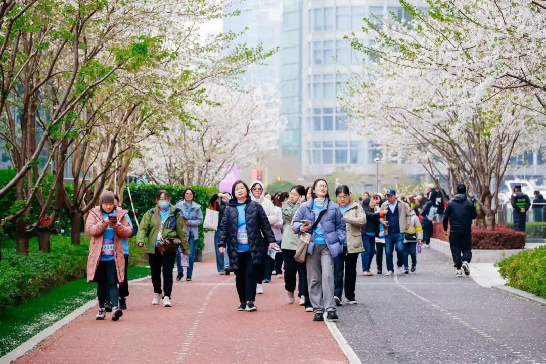 春日的北外滩鲜花绽放,与身着天蓝、浅粉、嫩绿春日色系赛事服装的参赛者们交相辉映,在北外滩滨江形成了一道靓丽的风景线。
