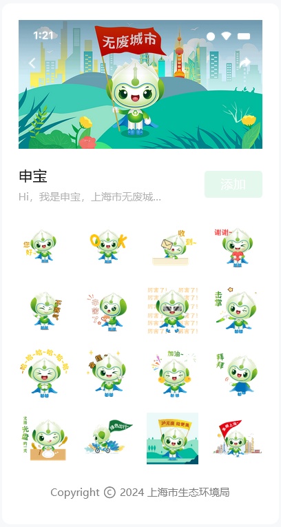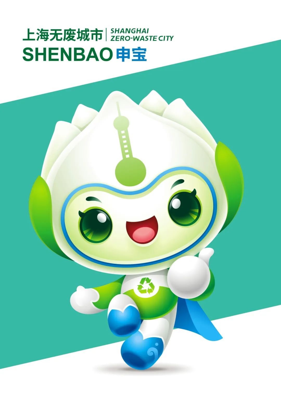 “申宝”融合“绽放玉兰花、生态绿叶、东方明珠、奔流黄浦江、绿色无限循环”等视觉元素,结合传统吉祥娃娃拟人化形象,代表上海市地域特色和无废城市内涵。