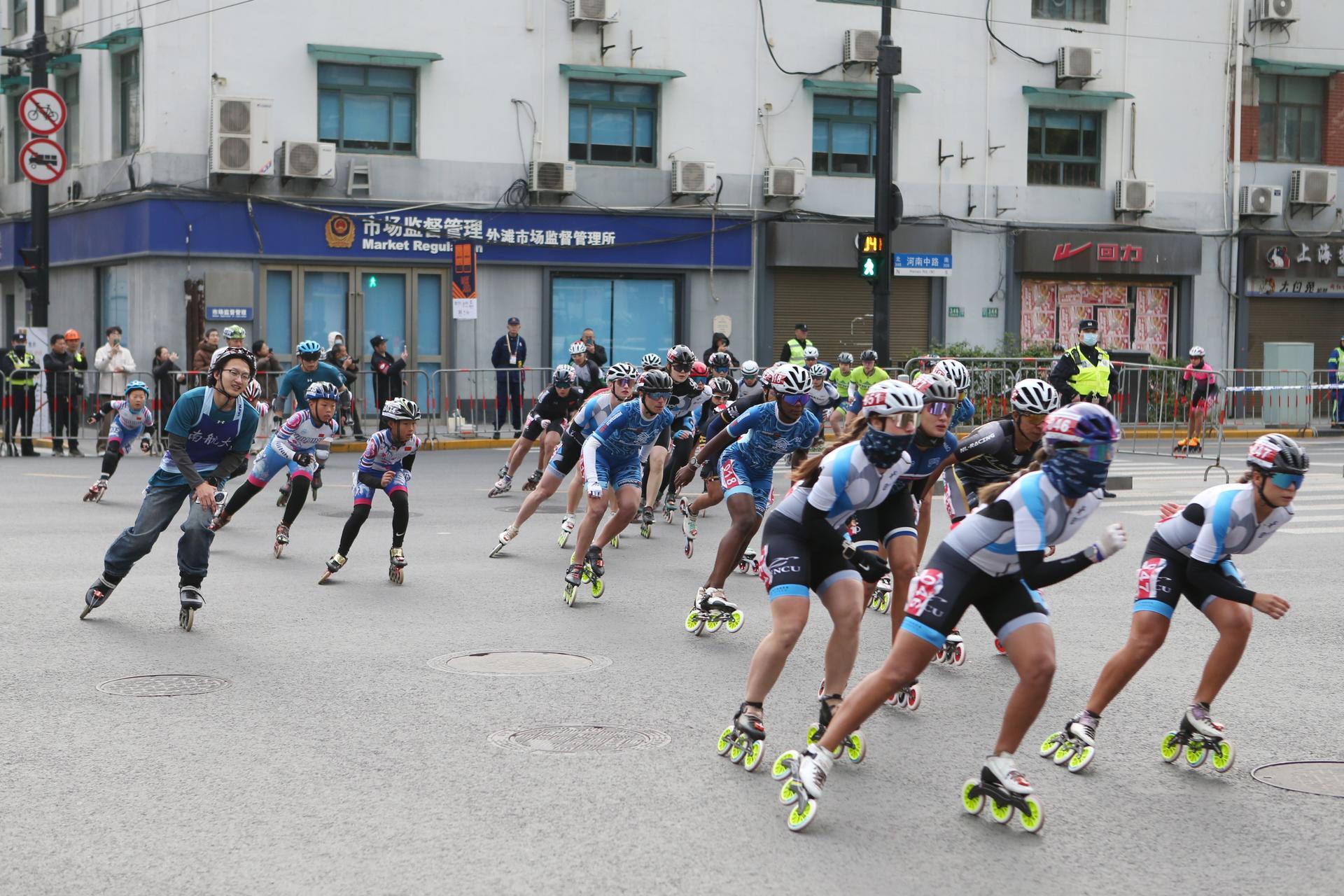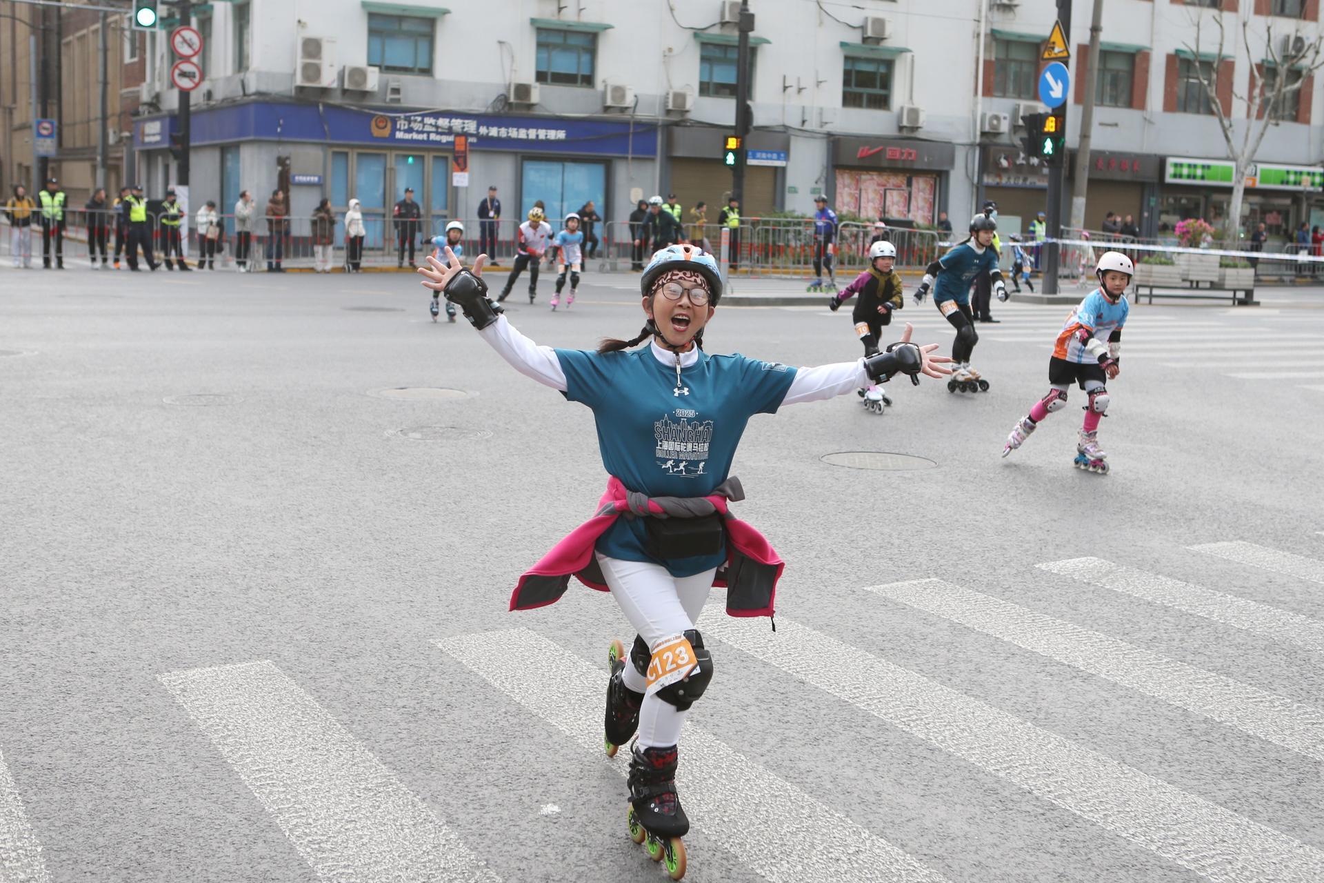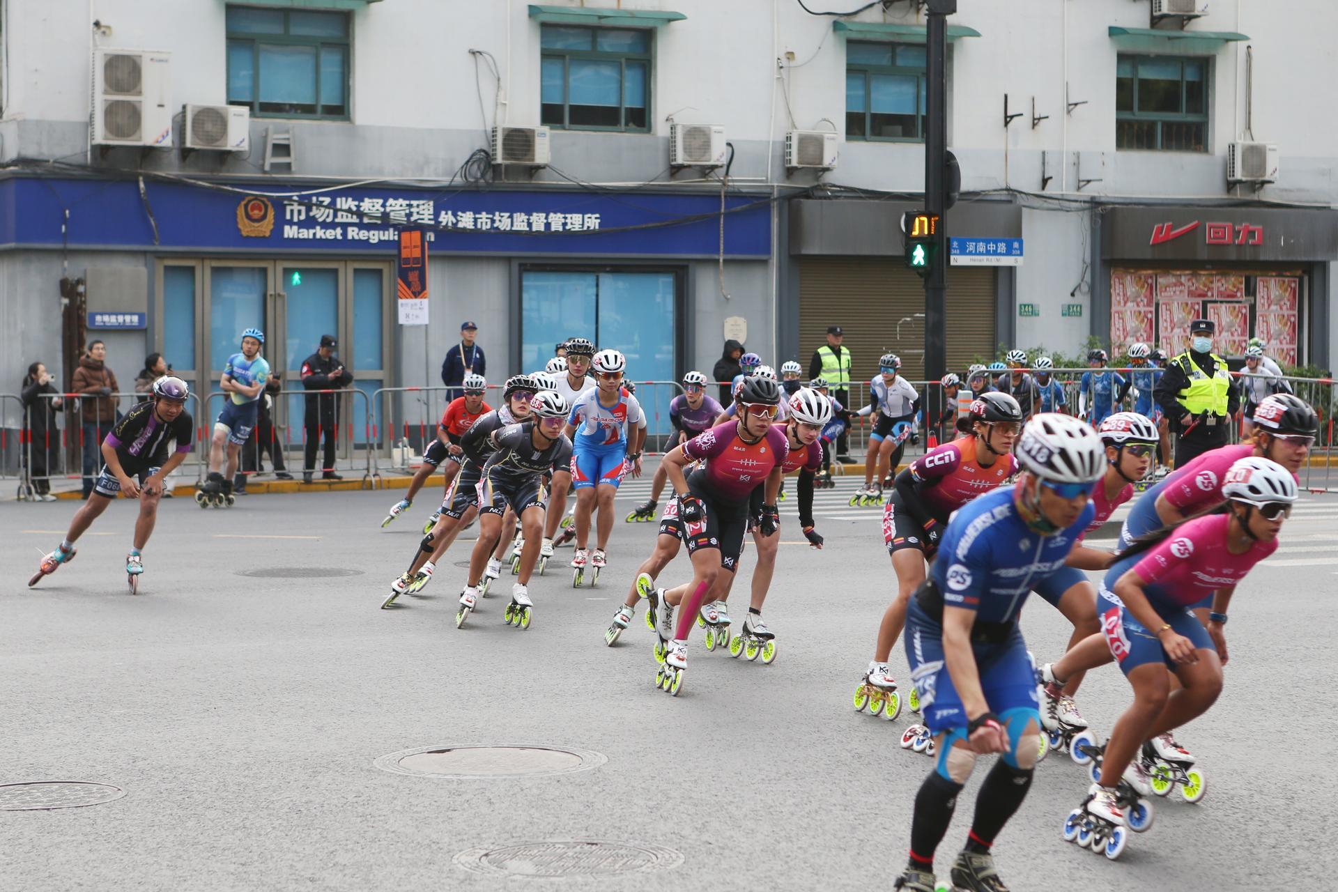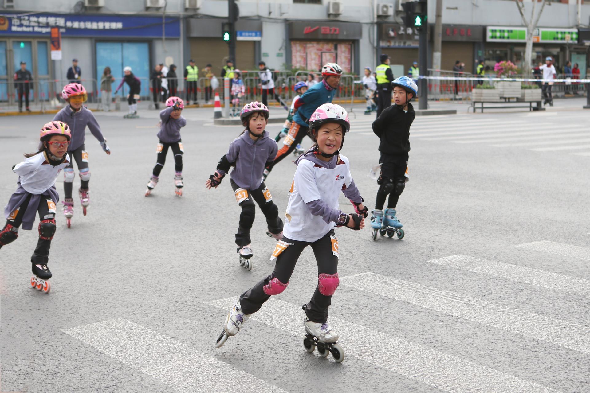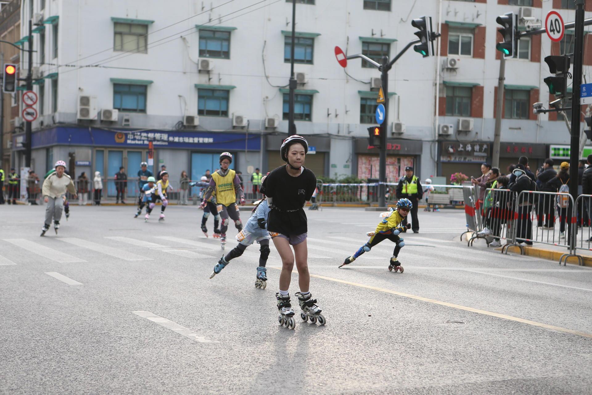 比赛刚过不久,已经有轮滑运动员来到了位于2.5公里处的河南中路九江路路口。记者在现场观察到,赛道两旁早已围满了观众,随着更多运动员呈一字形队列通过,观众们也用不遗余力的呐喊为选手加油助威,为赛事营造了热烈的氛围。眼见有小选手不慎摔倒,他们也及时送上暖心的安慰,鼓励他起身继续前行。与此同时,还有不少摄影爱好者手持“长枪短炮”,记录下一个个精彩的瞬间。