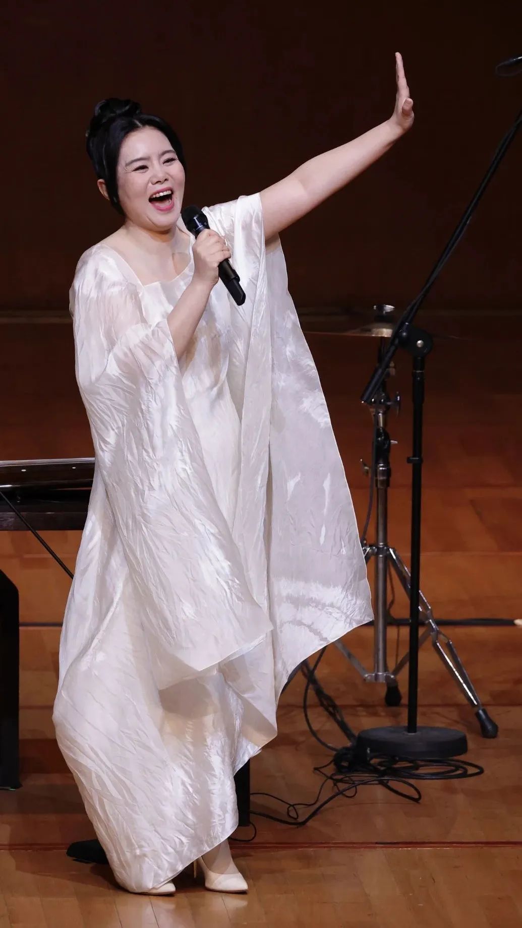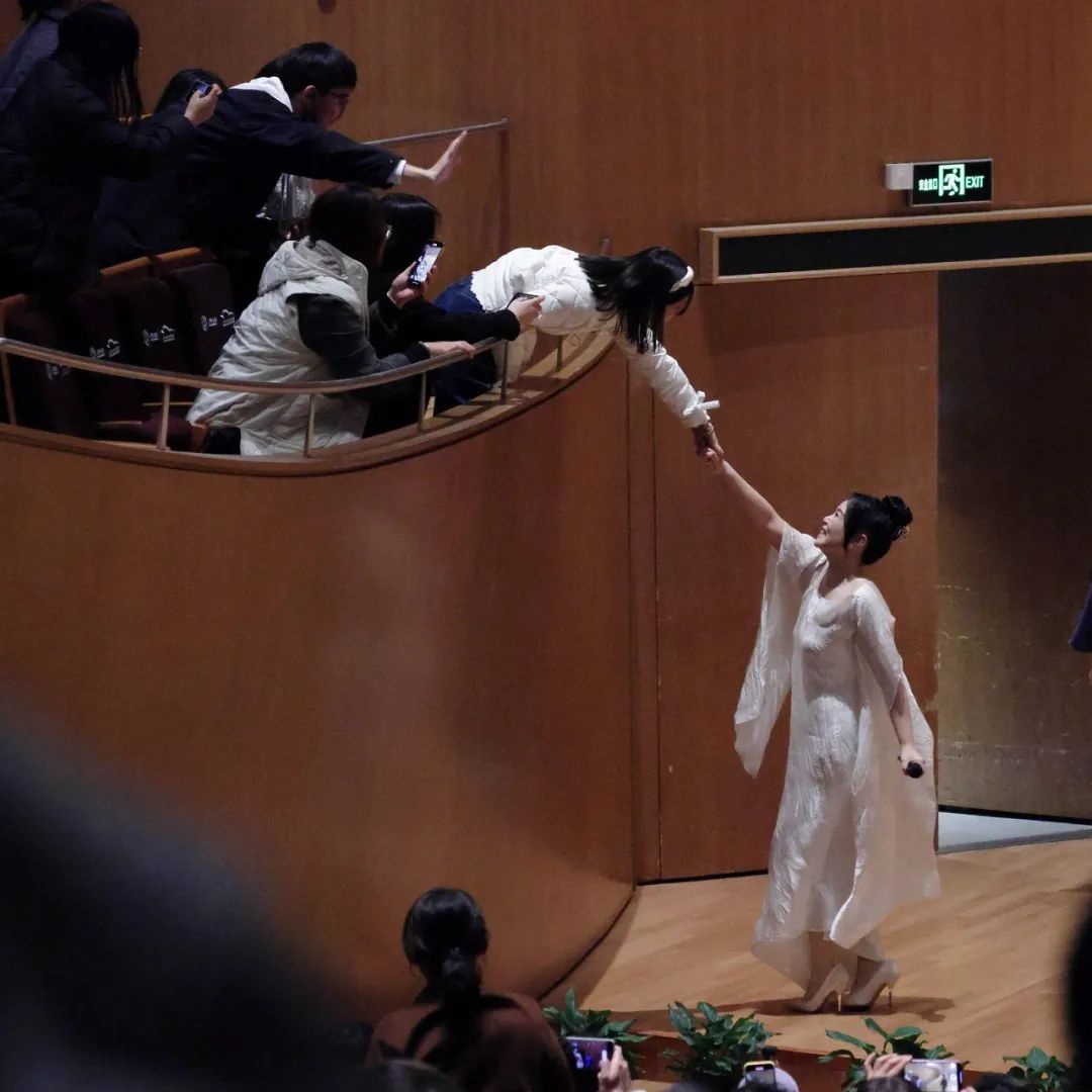 古琴恬淡悲悯,埙、箫如泣如诉,笙声缓缓绵延,鼓点敲扣心弦,配合龚琳娜投入动情的演唱,整个上半场的观众席安静沉醉,大家都沉浸在蔡文姬凄婉悲凉的人生中,直至第十八拍曲罢,龚琳娜低头擦掉滑落的泪,才报以热烈的掌声。