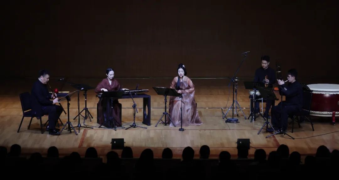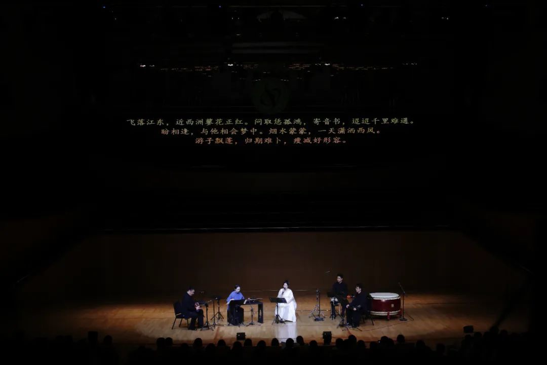 音乐会下半场,五位艺术家带来了跨古越今、兼具时代特色与地域风格的多首琴歌作品,包括王维《阳关三叠》、李清照《凤凰台上忆吹箫》、南宋古曲《黄莺吟》、取词《诗经·关雎》的《龙的眼》、以贵州及川渝一带方言演唱的《平沙落雁》等,并奉上岭南琴派代表作《碧涧流泉》以及歌声与笙声相和相竞的练声曲《声笙不息》。