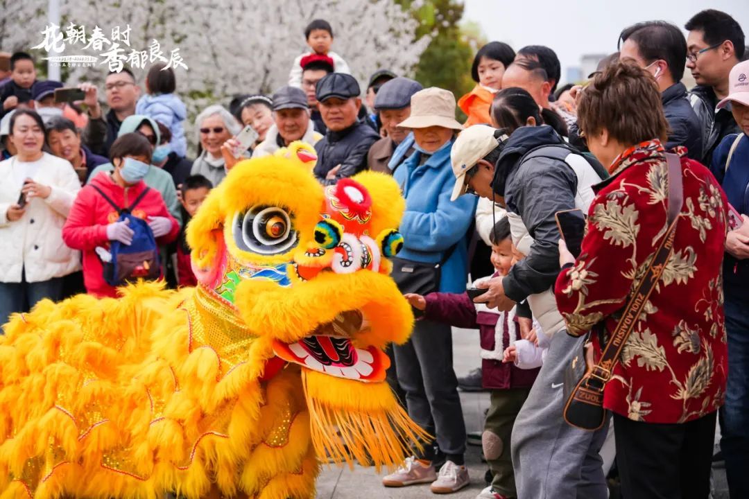 3月30日闭幕式当天,大宁公园特别策划沉浸式体验活动。金红舞狮腾跃翻飞,踏着铿锵鼓点献上祥瑞之舞;舞者身着霓裳,于悬空鼓面翩然起舞,演绎出刚柔并济的东方韵律。