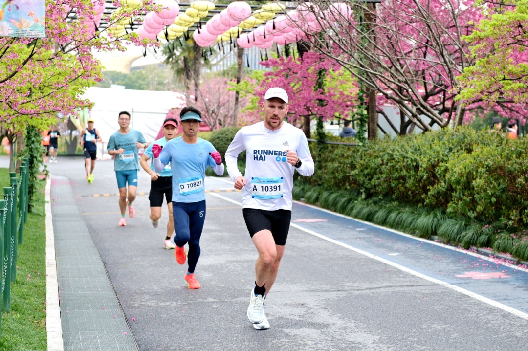“第一次参加‘静安半马’,奔跑在公园,‘数字跑道’、满目鲜花……这里的一切都让我们如沐春风。”