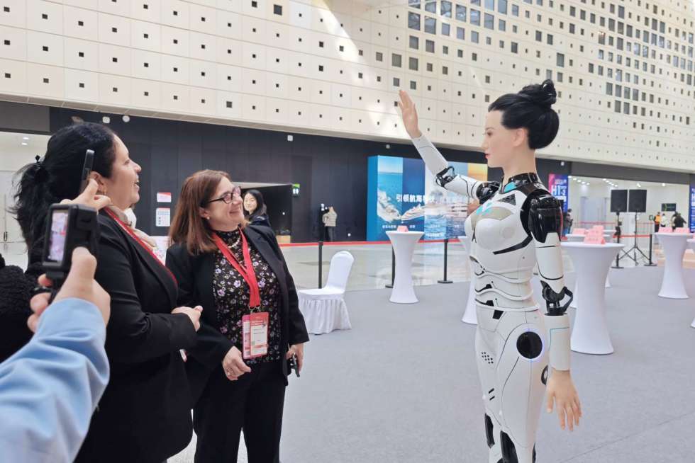 为欢迎中外观众的到来,以女性形象示人的机器人“清宝”,在旅博会开幕式现场摇曳双手,热情地跳了一段舞,吸引大家拍照留念。“在演出、导览、景区销售等方面,‘清宝’都已经是一个优秀的主播,可以为景区带来流量,也可以胜任长时间的工作,它的应用场景也在变得越来越广。”上海清宝引擎机器人有限公司销售部经理杨建强表示,仿真机器人的核心是要越来越像人,技术上也将向这个方向不断迭代,通过不断学习,适应不同的文旅场景,“技术主要集中在微表情和动作表现上,要给观众提供更多的情绪价值。”