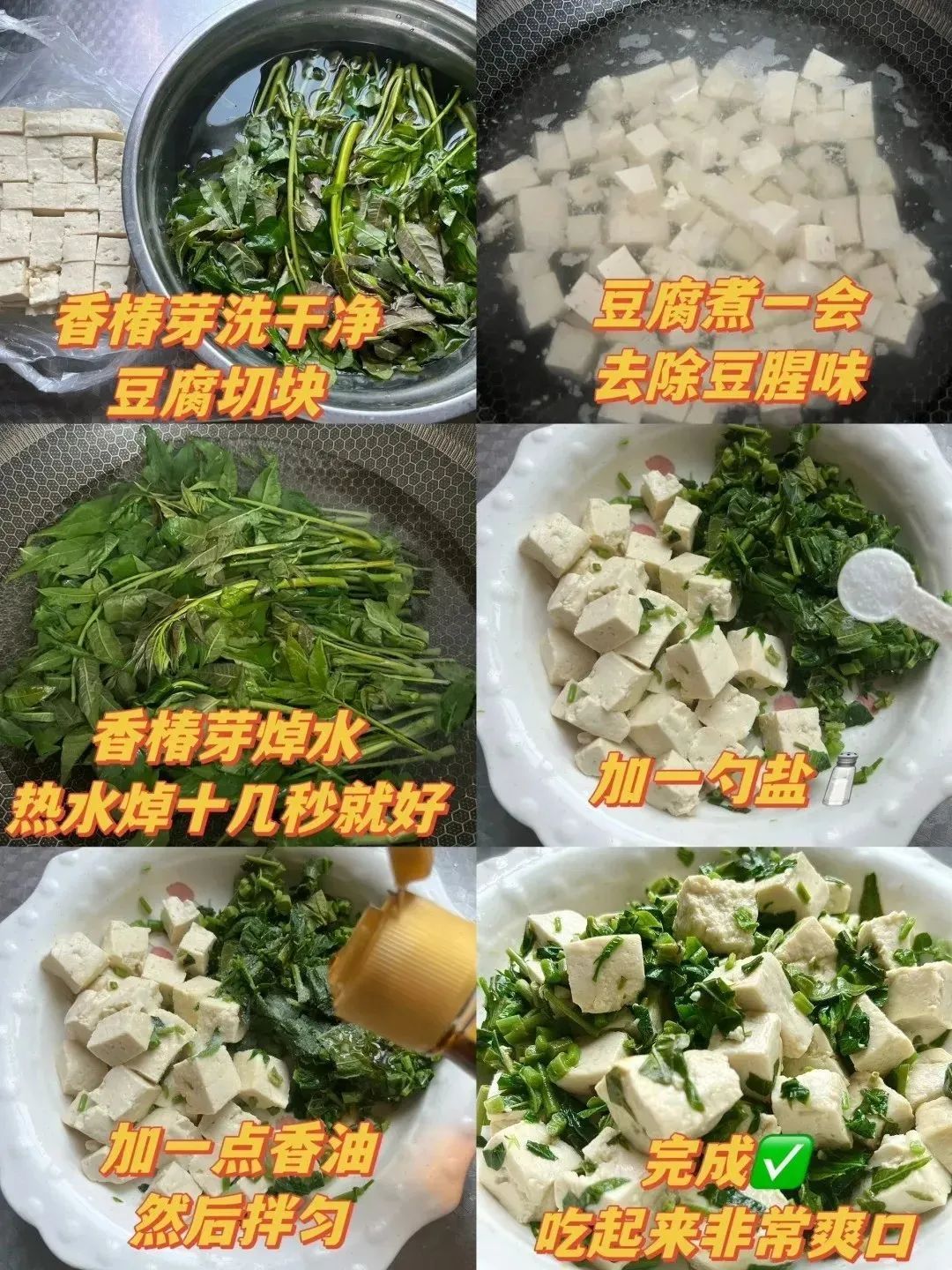 香椿芽、豆腐、盐、香油。