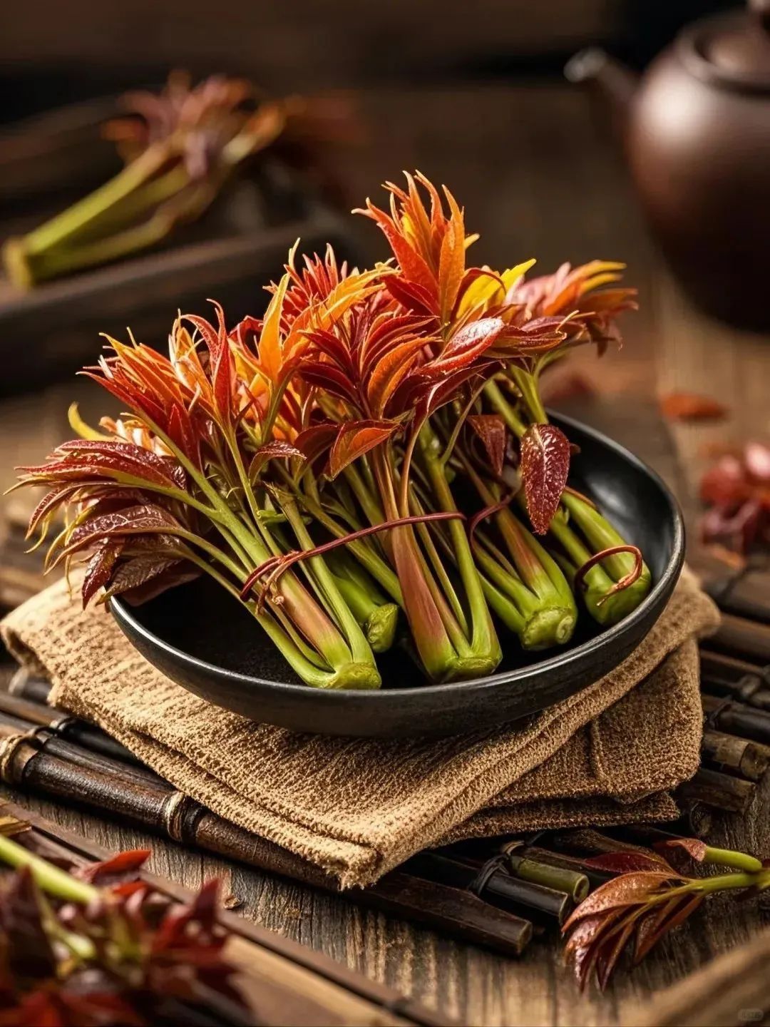香椿,又称“树上蔬菜”,是香椿树的嫩芽。它的香味独特,带着淡淡的坚果和草木香气,入口回甘,令人回味无穷。正因如此,香椿成为了春天最具代表性的时令菜肴,常被称为“吃春第一鲜”。