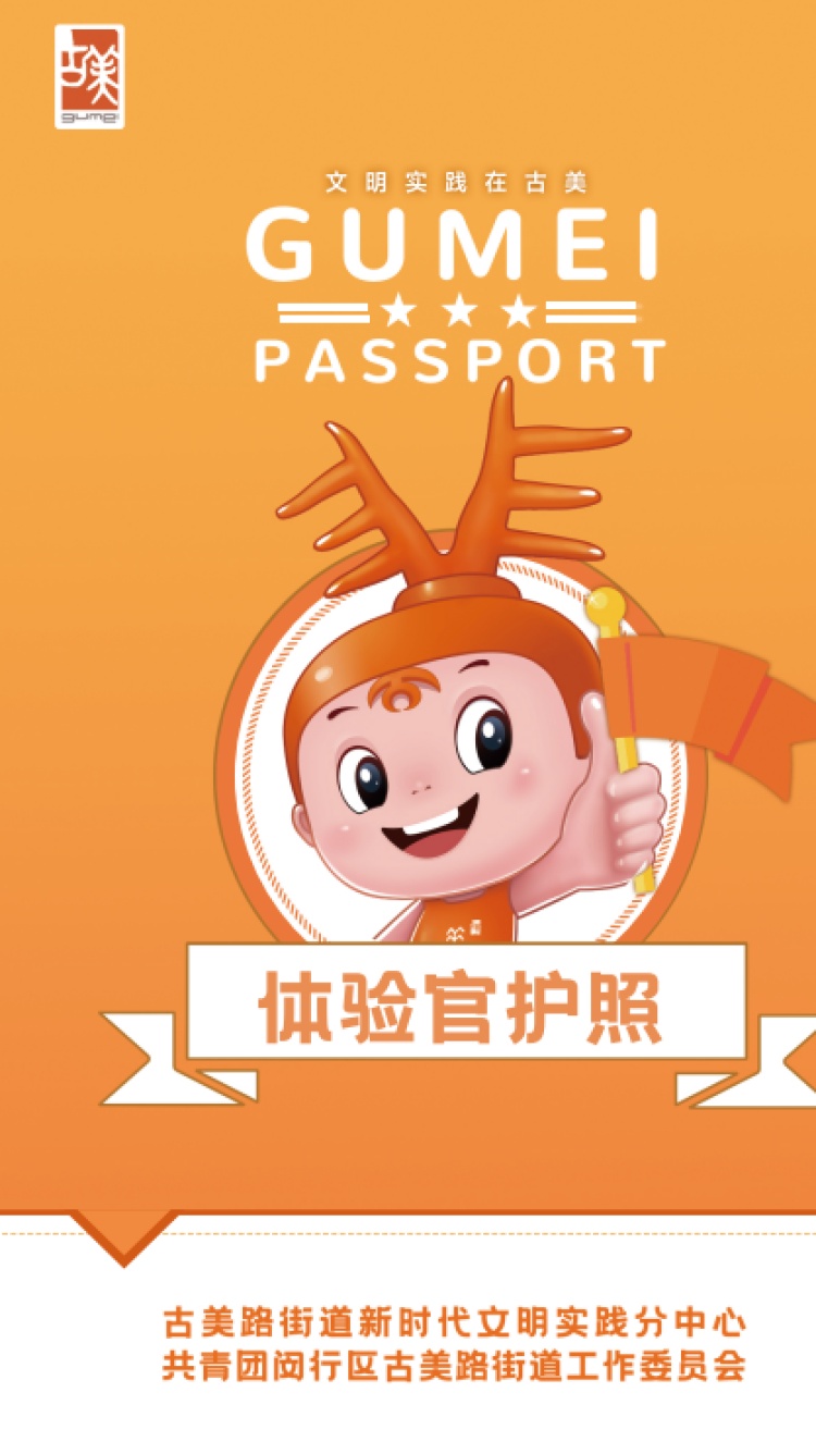 每到寒暑假,小学生往往都要到住家所属居委会报到,完成假期里的社会实践。希望孩子们假期里的社会实践活动形式更活泼多样,内容更新颖扎实、更具有吸引力,这是很多家长的心声。经过前期的走访调研,分中心决定面向青少年群体推出“古小美体验官”文明实践打卡项目。“聚焦打造‘人人可为、人人愿为’的新时代文明实践支持网络,我们统筹整合了古美辖区内的公共空间、文化地标、公益资源、共建单位等,并引入集章打卡这一为人们所喜闻乐见的形式,设计了一本‘体验官护照’。”周海琴介绍说。“体验官护照”的封面为橙黄色,鲜亮而醒目,中间印有古美路街道新时代文明实践分中心的首席代言官——卡通形象“古小美”,整体形象是一位阳光可爱的少年,由我国古老文字大篆“美”字演变而成,新颖别致,令人过目难忘。
