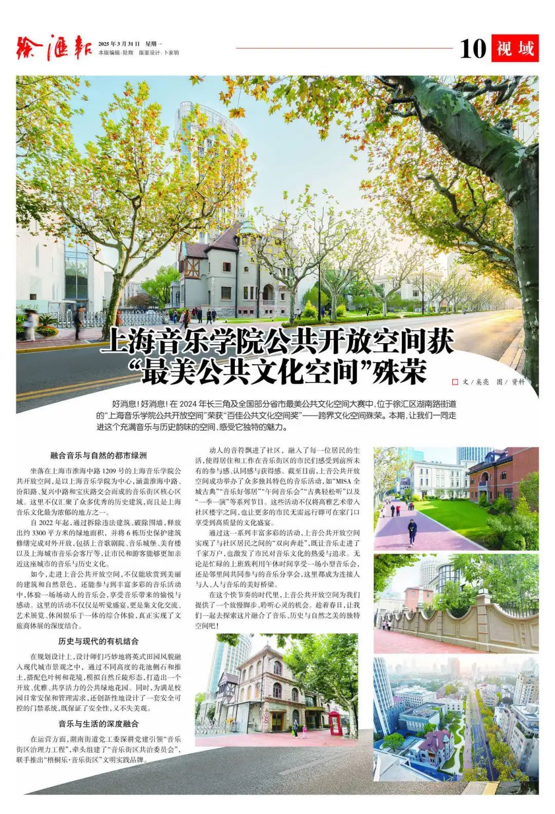 音乐是滋润灵魂的珍宝,它是在我们心中的“绿洲”。在徐汇区湖南路街道,“上音公共开放空间”,这片音乐绿洲,不仅荣获“百家公共文化空间奖”——跨界文化空间殊荣,而且让动人的音符飘进了社区,连接起人与人、人与音乐的美好桥梁……详情请观看10版视域。