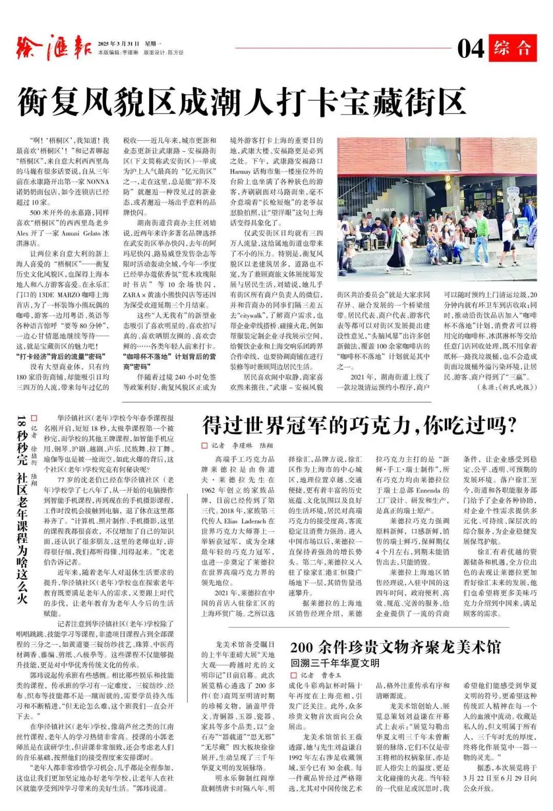 看“梧桐区”八方游客打卡宝藏街区,不惜久候,只为细品一杯咖啡?这“宝藏”究竟有哪些魔力?是往日的历史文化风貌,吸引着游客好奇目光?是新颖的商业业态,凝聚起年轻潮人们的向往?还是穿行在历史与新潮之间,商业、居民、游客 “三赢”的营商服务模式,始终在“积宝献藏”?