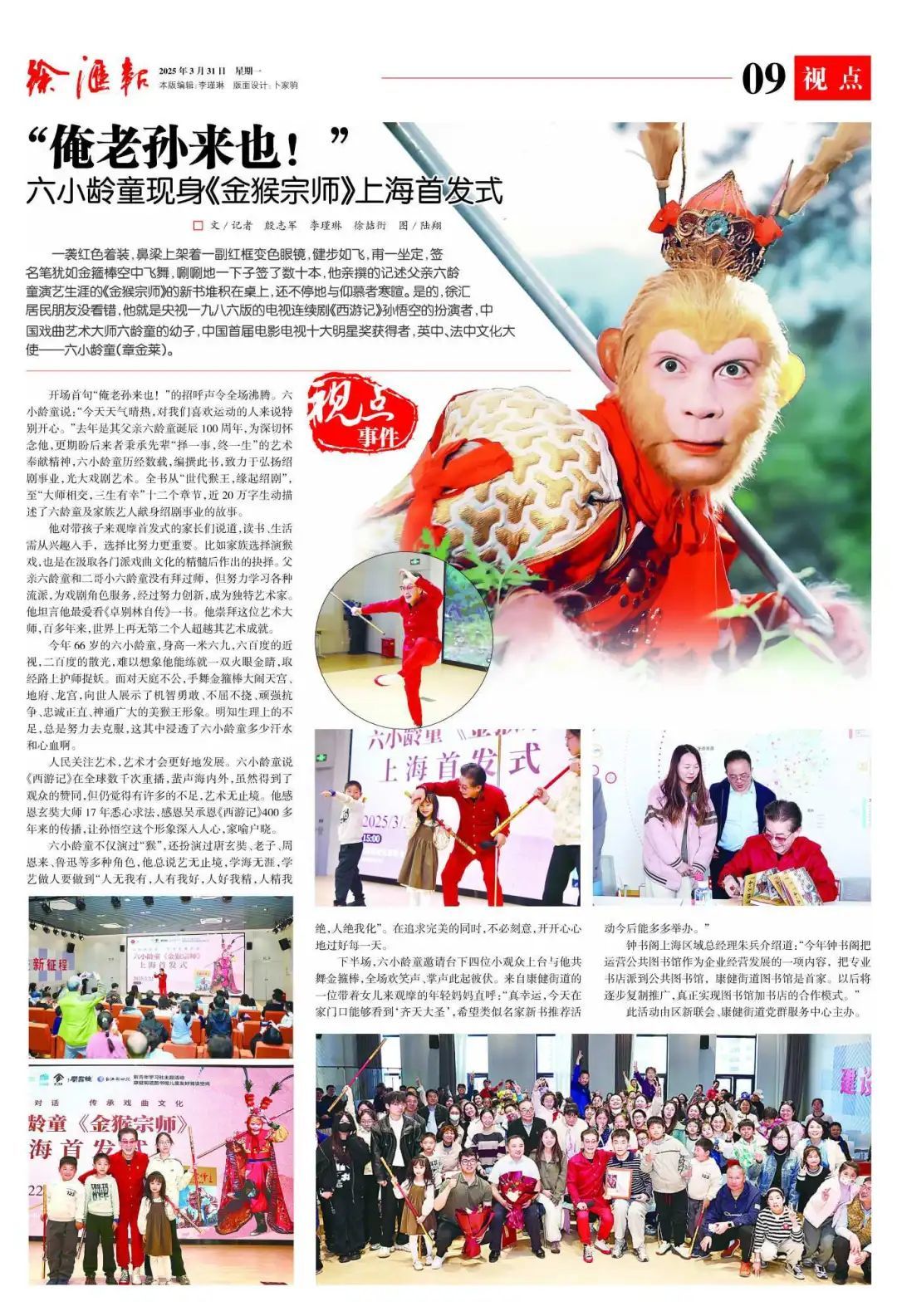 他来了,大家都来了,因为是“俺老孙来也!”在《金猴宗师》上海新书首发式上,六小龄童章金莱,真的来了!他带来了弘扬戏剧文化的讲演,带来了砥砺成才的故事,更有与小观众的互动。艺术大师,百姓讲坛,只有人民关注艺术,艺术才会更好发展。