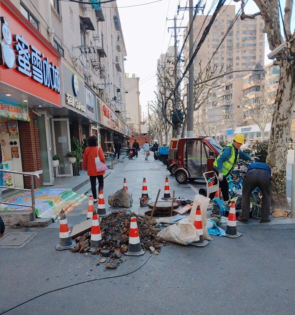 经调查发现,延长中路500弄沿街面在管道施工后,部分雨污管道与粪管合一,居民排污和商铺排污汇入同一根管道,加之沿街餐饮店众多,每日产生大量污水,致使管道“不堪重负”频频出现“肠梗堵”。