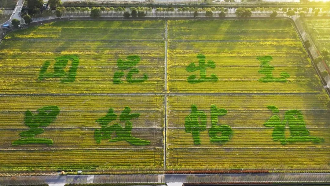 成片的油菜花迎春绽放,犹如一片金色海洋。传统鹅黄与斑斓色彩交错,高空俯瞰更显震撼——花田间藏着《平复帖》书法,农耕文明与书法艺术完美交融。