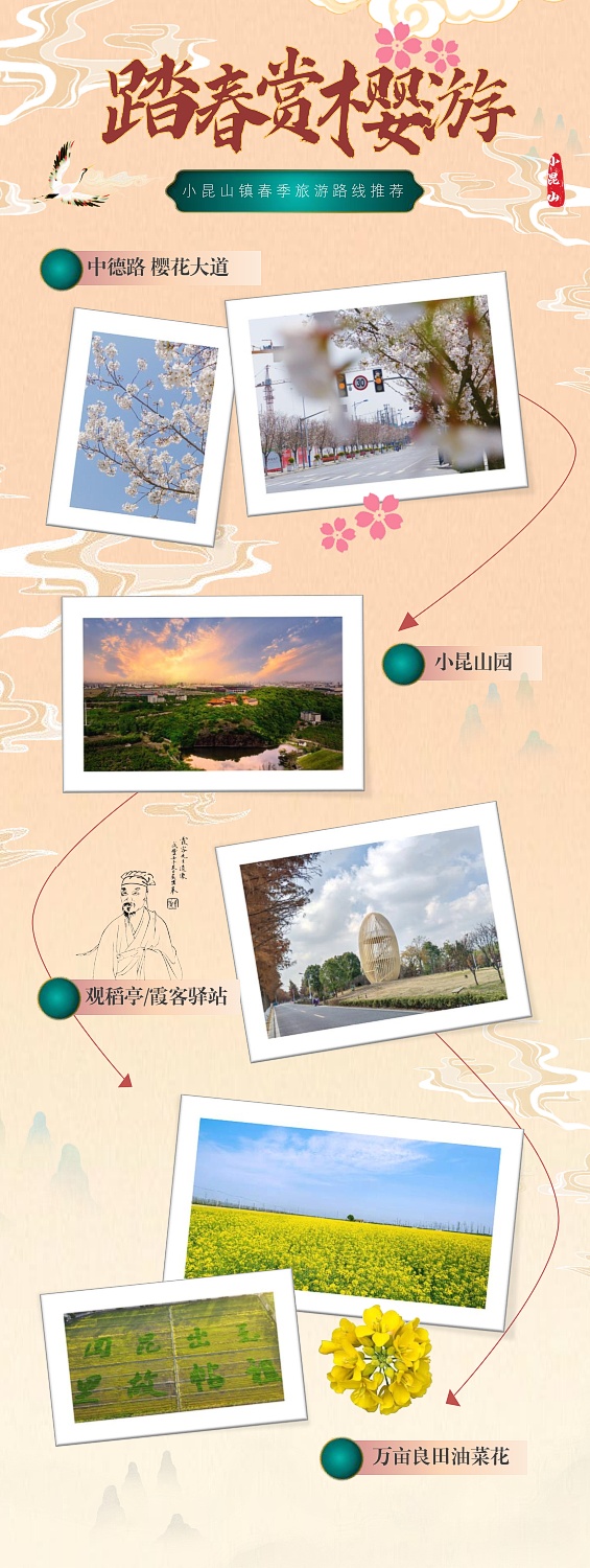小昆山镇踏春赏樱路线: