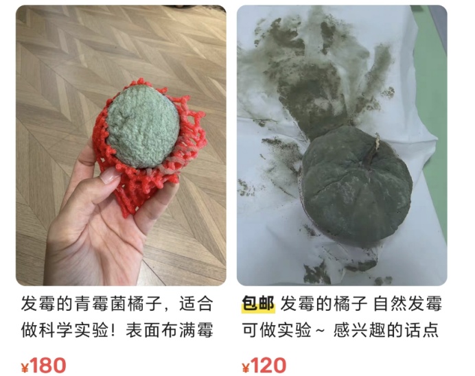 近日,在某二手交易平台上,一些卖家挂出了发霉变质、表面长满绿毛和黑斑的橘子,标价从几十元到几百元不等,甚至有商品定价高达上千元。除了发霉橘子,发霉酒精等也出现其平台上,并宣传称这些“天然霉菌”具有“科研价值”,可以作为生物、化学类科学实验的材料。真的有人会买吗?发霉橘子真的能赚钱?