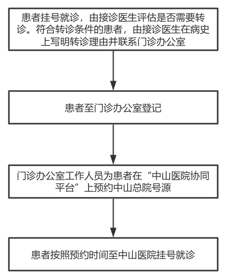 在吴淞中心医院,可通过“中山医院协同平台”直接预约中山专家及特需门诊,有需求的患者请按照以下流程至门诊办公室预约。
