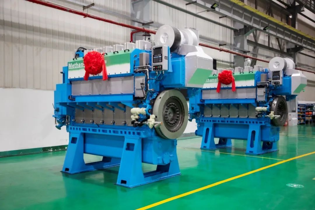 在功率指标与传统柴油相当的情况下,甲醇替代率超过90%,最高可达95%,单台甲醇燃料中速机每年可减碳超5000吨(应用绿色甲醇),减少60%氮氧化物和高达99%硫氧化物排放。该型发动机于2024年10月通过船级社型式试验,并取得国内首张高替代率甲醇燃料船用中速机产品型式认可证书。