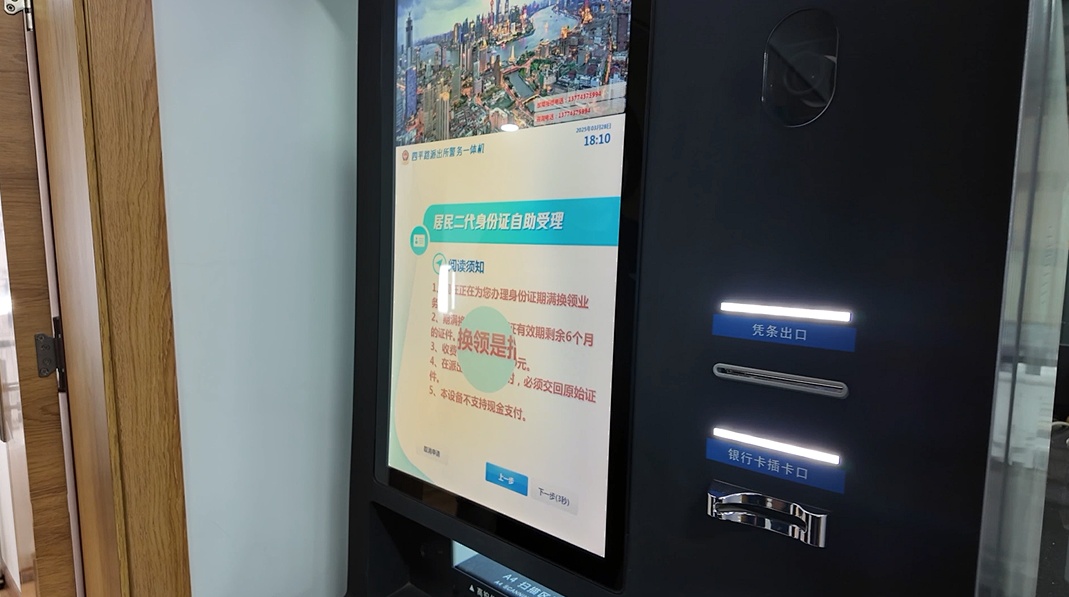 市民孙先生则是通过微信公众号得知四平路派出所有夜间办证专场服务,便特地赶来办理换证。从开始办理、拍照到自助操作完成换证手续,用时不超过10分钟,一套流程下来孙先生觉得非常方便,“晚上来办的话就不用上班请假了,很方便。”