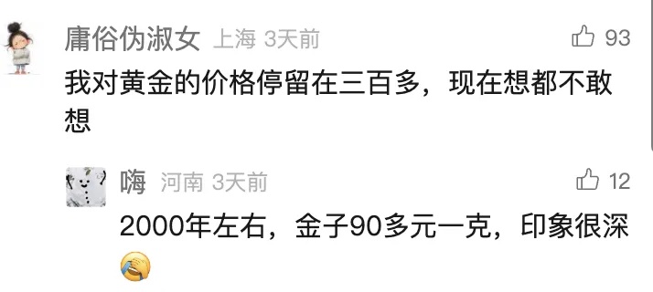 对于金价疯涨,网友表示