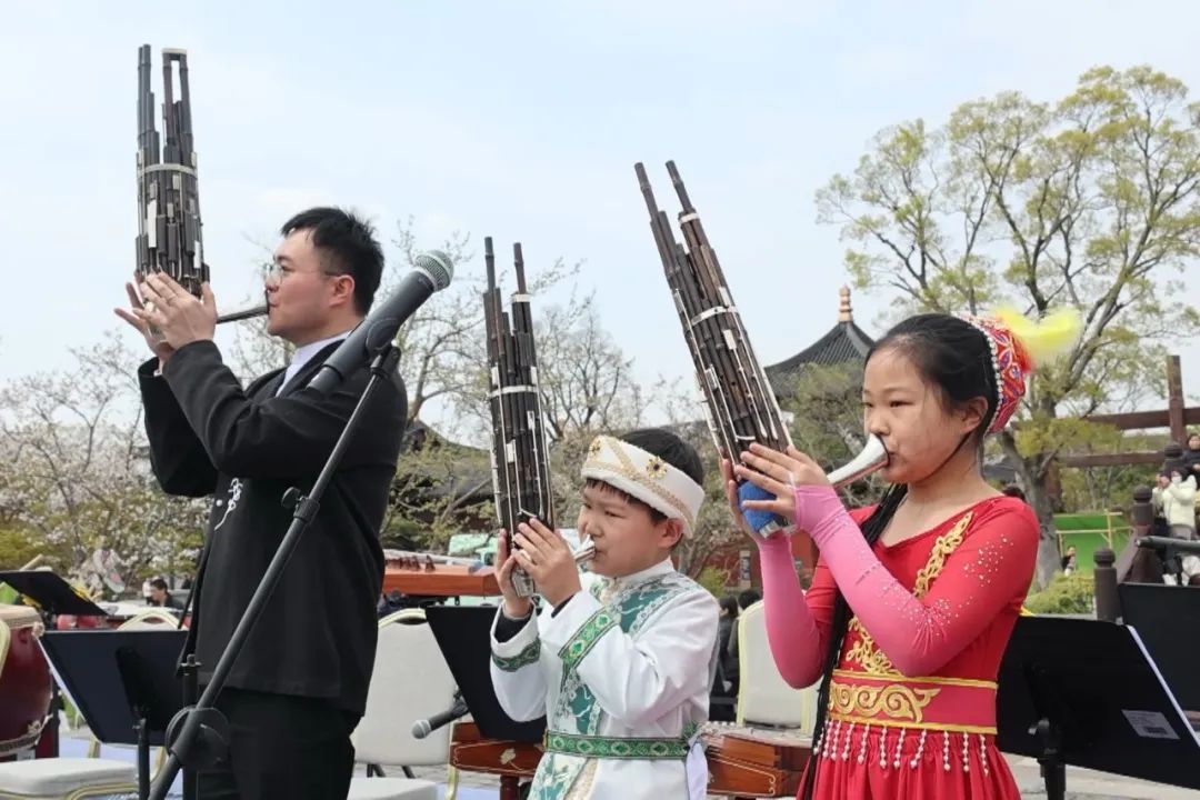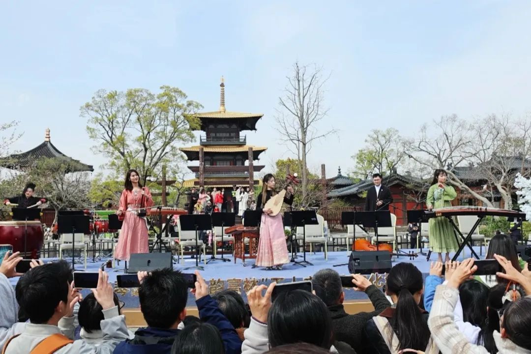 3月30日下午,广富林文化遗址化身古今交融的春日剧场,“琴瑟和鸣 乐韵富林”民乐专场音乐会与花神巡游等系列活动,为慕名而来的游客展开一幅生动的文化长卷。富林台上,松江职工艺术团带来民乐音乐盛宴,二胡婉转如潺潺流水,竹笛清越破云,乐师们将传统民乐与流行元素交织新编,吸引百余名游客驻足聆听。来自青浦区的游客张女士赞叹:“没想到传统民乐能和现代审美结合得这么巧妙!”据介绍,本场音乐会由景区与松江区工人文化宫联动,携手松江职工艺术团打造而成,音乐听觉与中式美学场景交融互文,让游客沉浸式、零距离欣赏音乐大餐。