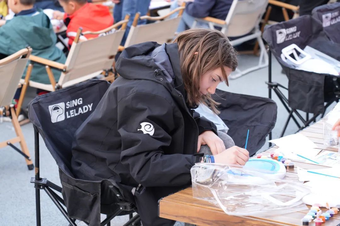 来自法国的Léa Payard小朋友开心地说,“我用黄色、橙色的颜料,在飞盘上画了一圈涂鸦,我觉得很不错,自己很满意,也很开心。”