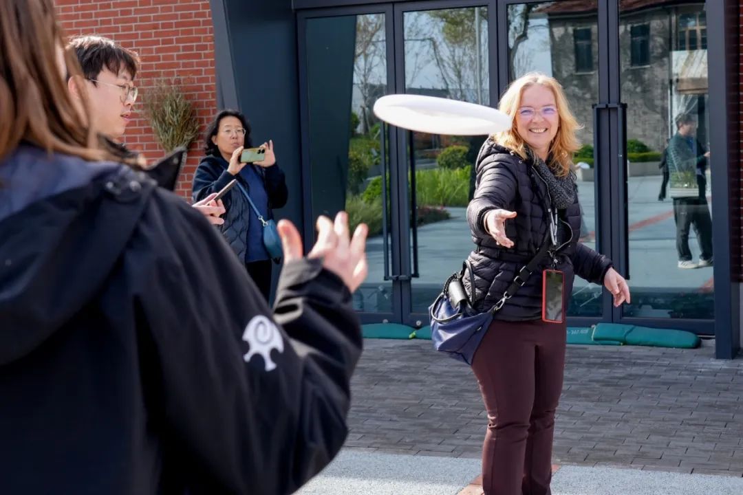 随后,活动进入飞盘接力环节。春日暖阳下,一组组原本陌生的家庭打破界限,围成一圈,友好互动,接力传递飞盘。只见大家时而用力过猛,飞盘飞偏,时而动作搞怪,欢笑成团,气氛颇为热烈。