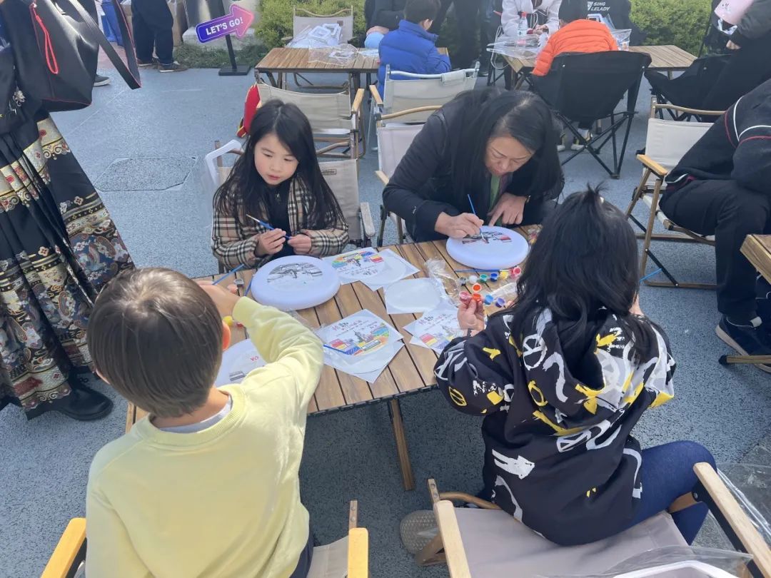 现场,大家体验了油罐主题的飞盘涂鸦,各组家庭摩拳擦掌,拿起画笔、调起颜料,在工作人员提供的参考图的基础上,尝试将油罐元素融入飞盘设计中,勾勒出自己心目中油罐和老厂房的形状。不一会儿,一幅幅作品就大功告成,大家纷纷与自己DIY的作品合影留念。