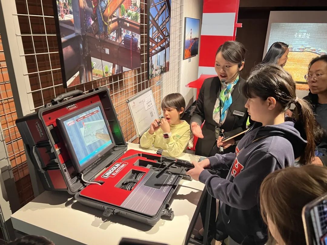 现场,外国亲子家庭沿着参观路线,“打卡”了馆内的诸多珍贵展品,充分感受“活”起来的技能。其中,“技能与太空探索”主题区域吸引了许多人的注意力,大家走进四面环绕的太空场景中,“一步一脚印”,模拟着宇航员在太空行走的奇妙体验。还有的亲子家庭格外钟情于复兴号高铁模拟驾驶,上演“速度与激情”;也有小朋友排长队,只为体验一把虚拟焊接机操作。