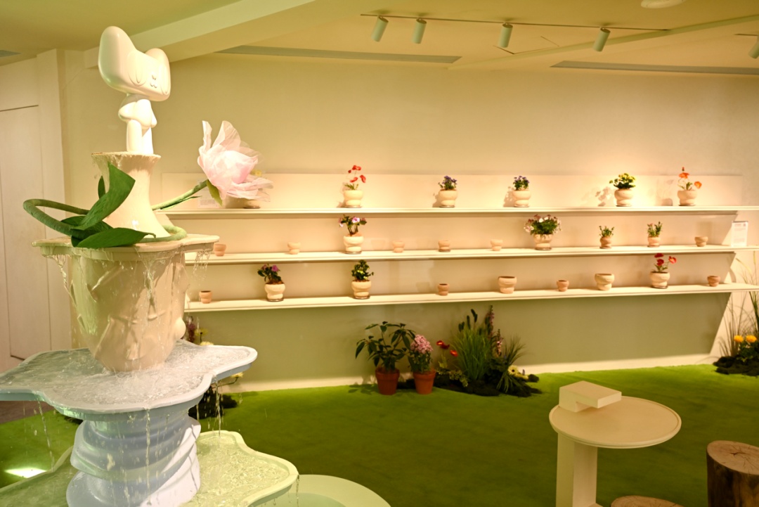 走进Chapter的一层空间,首先映入眼帘的不是传统货架,而是一座被鲜花簇拥的室内花园。喷泉、画架、花园桌椅错落其间,阳光洒在微景观上,仿佛一座被精心打理的温室。