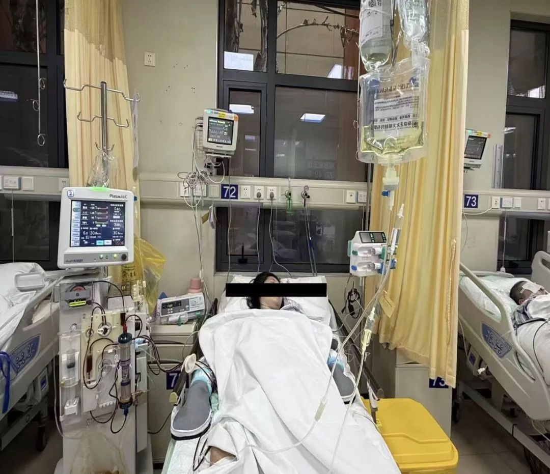 近日,同济大学附属同济医院急诊内科联合多学科MDT成功救治一名甲亢危象合并糖尿病酮症酸中毒患者。患者金某,30岁,2年前曾在我院诊断为1型糖尿病合并甲状腺功能亢进。本次发病一天前患者因恶心呕吐伴发热,120送至上海市某中心医院,测血糖30.1mmol/L,血酮1.7mmol/L,血气分析提示PH 6.98,PCO2 11.6mmHg,PO2 141mmHg,诊断“糖尿病伴酮症酸中毒”,予静滴胰岛素、补液、抗感染等治疗后,患者症状无缓解,且逐渐出现呼吸困难、心悸、冷汗,心电图提示“室上速”,予以维拉帕米5mg静注后,心悸、呼吸困难症状未见缓解且出现意识模糊,遂立即转至同济医院急诊抢救室,急诊查体:T 39℃,P 190次/分,R 32次/分,BP 187/91mmHg,SPO2 99%,意识模糊,气促,大汗,双侧眼球突出,双侧甲状腺Ⅲ度肿大,可及震颤、血管杂音。考虑甲亢危象合并糖尿病酮症酸中毒,立即予以液体复苏、胰岛素、抗甲状腺药物、糖皮质激素及艾司洛尔控制心率等治疗,收入EICU。同时请内分泌代谢科刘光辉副主任医师会诊,协助诊疗。早交班病例讨论时,再次追问病史,发现患者近一年未复查甲状腺功能,近2-3个月擅自停用抗甲状腺药物,近期胰岛素用量也不规范,未规范监测血糖,上述都是导致本次甲亢危象的诱因。该患者目前甲亢危象合并糖尿病酮症酸中毒,病情十分危急,急诊团队第一时间联系检验科紧急检测患者甲状腺激素水平,同时联系血库申请血浆置换快速将患者血液中甲状腺激素水平降下来。