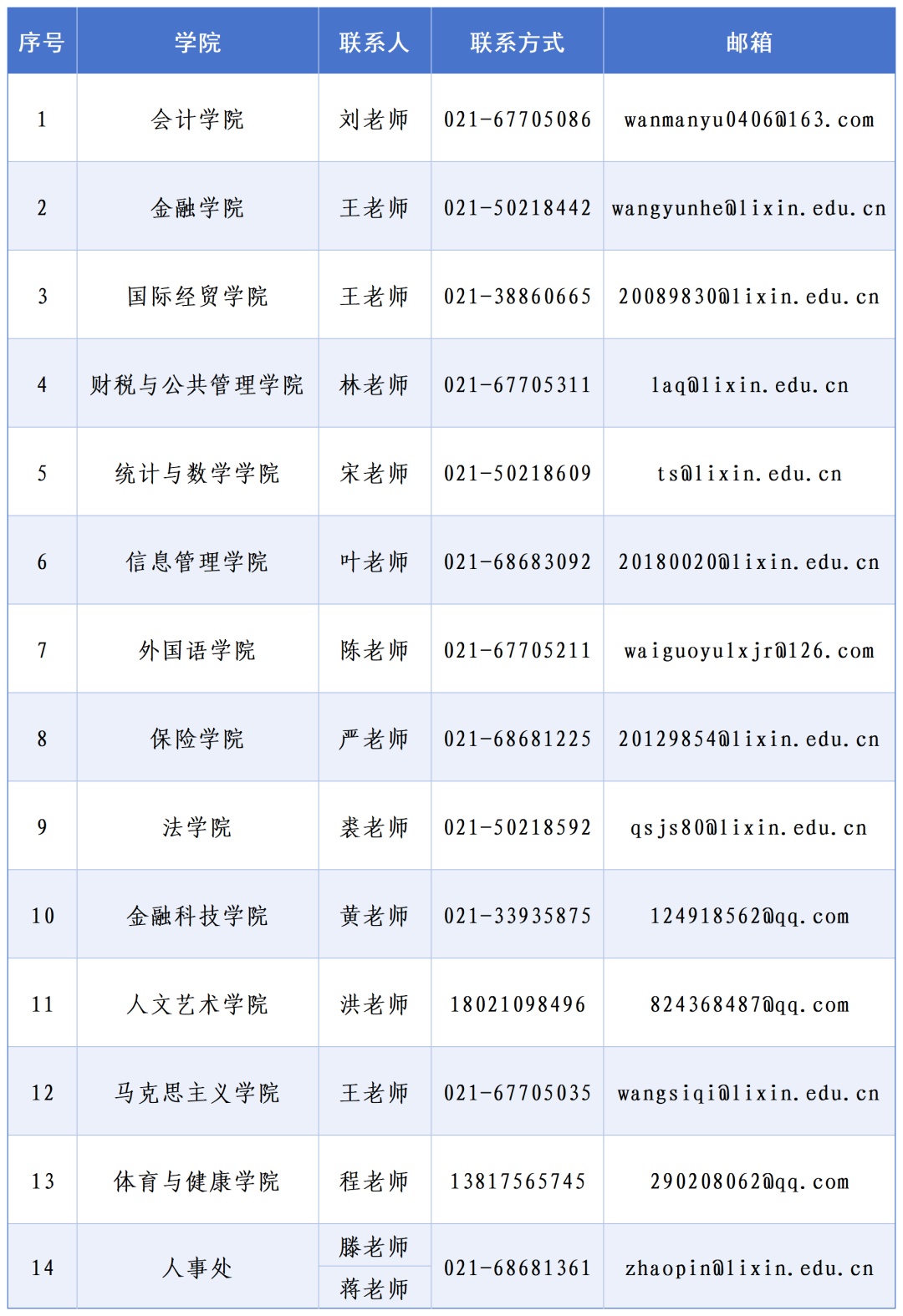 有意者请登录上海立信会计金融学院人才招聘系统(https://zhaopin.lixin.edu.cn/product/recruit/website/RecruitIndex.jsp?FM_SYS_ID=lxkjjrxy)填写相关信息资料。
