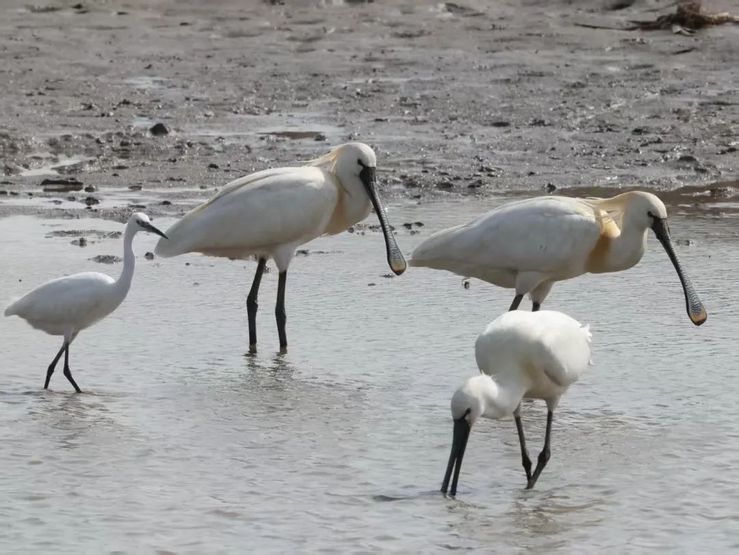 春回大地,万物复苏,崇明东滩保护区迎来了候鸟北迁的重要时期,大量候鸟陆续过境崇明东滩,其中出现了勺嘴鹬、黑脸琵鹭、黑嘴鸥等珍稀候鸟的身影,还有罕见的斑胸滨鹬首次现身崇明东滩。