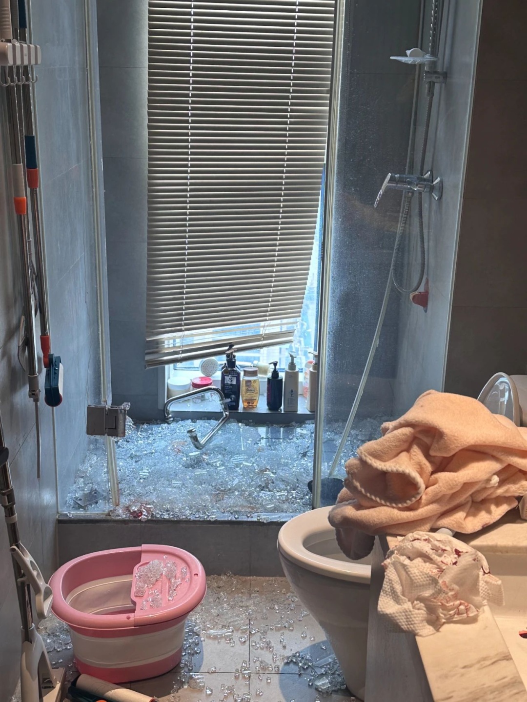 事发突然 女子根本来不及反应 导致全身多处被飞溅的玻璃碎片割伤 由于女子是独居 只能忍痛先离开浴室