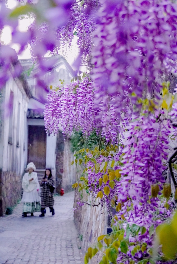 惠山古镇内多处地方都有种植紫藤,花开为紫,茎绕为藤,柔中有刚,紫气东来,既浪漫又吉祥。