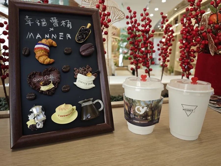 咖啡馆里还出现了首创:在花溪路与兰溪路路口党群服务中心的幸福曹杨×MANNER咖啡店里,应街道要求,推出曹杨与Manner首个社区联名款咖啡,很受居民欢迎。