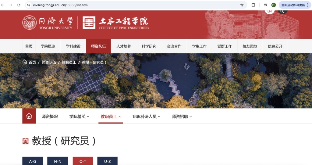 记者查询了同济大学土木工程学院以及建筑与城市规划学院官网上的各学院教师名单(包括退休教师),均未发现潘爱国目前或曾经在同济大学从事教师职务的信息。