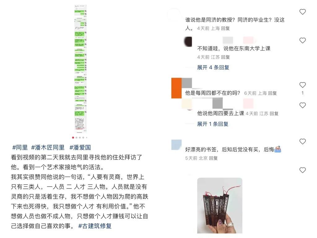 而在社交平台上,又有网友提供相关资料,证明潘爱国曾说自己是东南大学的老师,每周四要去学校上课。而记者到达的当天正好是周四,潘本人正在店铺内,并未外出。