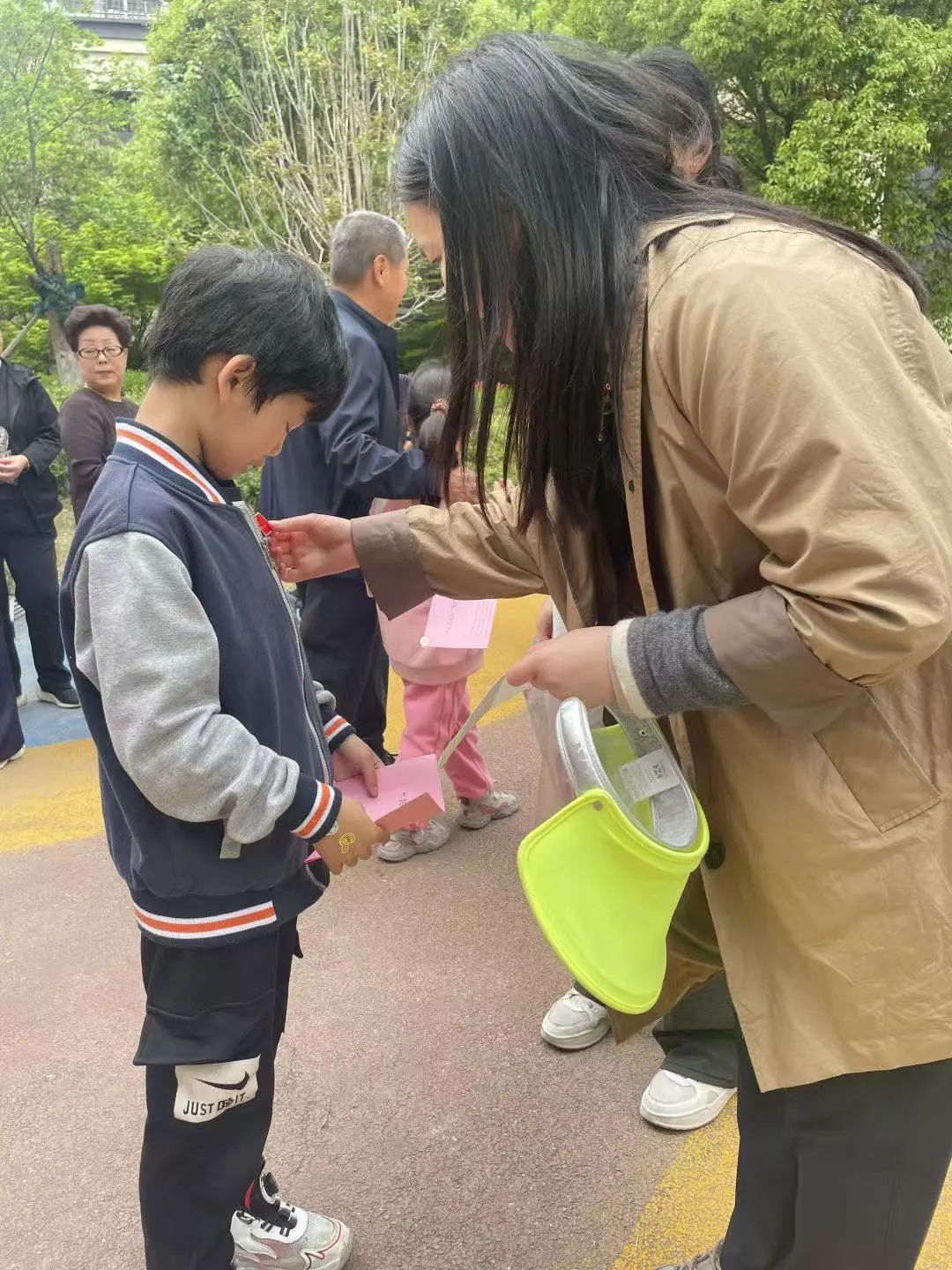 在“共享花园”开园日,精心筹备的认领仪式成为社区焦点。“雍和小先生们”作为“小园丁代表”,与家人共同贴牌宣誓;物业工作人员为每个家庭颁发《养护责任承诺书》,明确浇水、修剪等日常管护义务。仪式感与契约精神的双重加持,让绿化维护从“任务”变为沉甸甸的荣耀与责任。